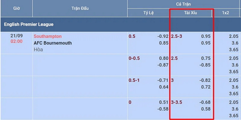 - Trong trường hợp tổng tỷ số của trận dừng lại ở con số 3, người đặt tài sẽ thua nửa tiền và người đặt xỉu ăn nửa tiền.